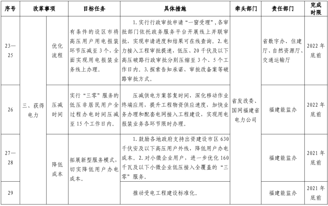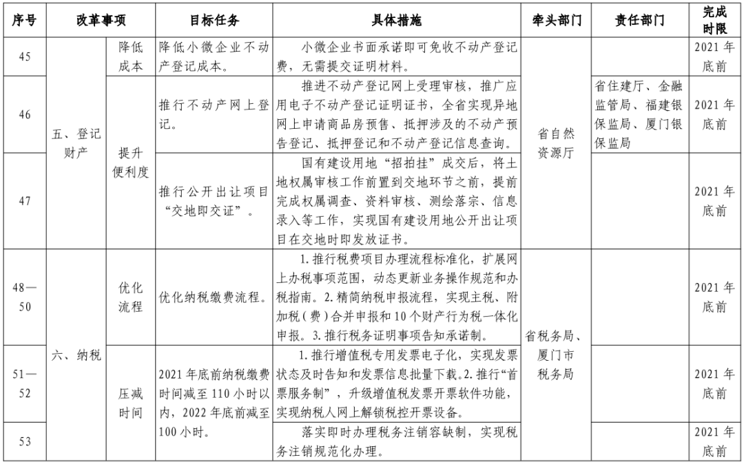 福建省优化营商环境改革重点任务清单